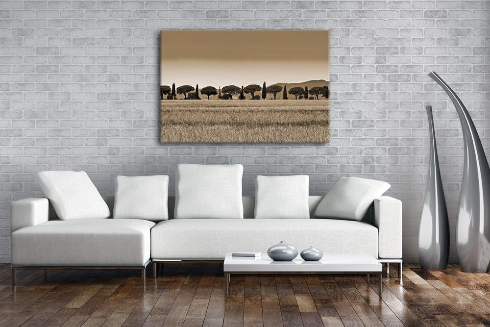 deyoli Toskana Landschaft mit Zypressen und Pinien Format: 100x70 Effekt: Sepia als Leinwandbild, Mo