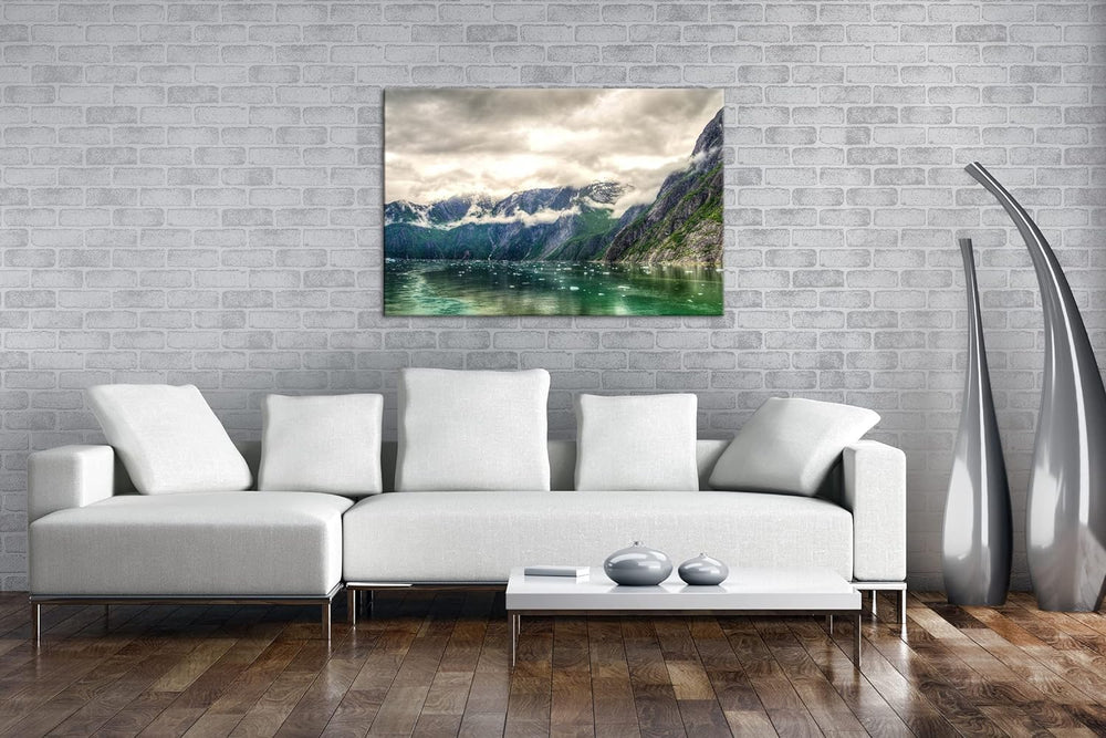 deyoli Tracy Arm Fjord bewölkt in Alaska im Format: 80x60 als Leinwandbild, Motiv fertig gerahmt auf
