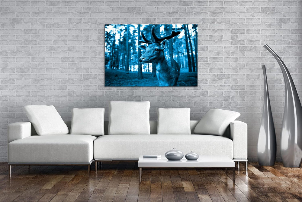 deyoli Traumhafter Hirsch Format: 80x60 Effekt: Monocrome Blau als Leinwandbild, Motiv fertig gerahm