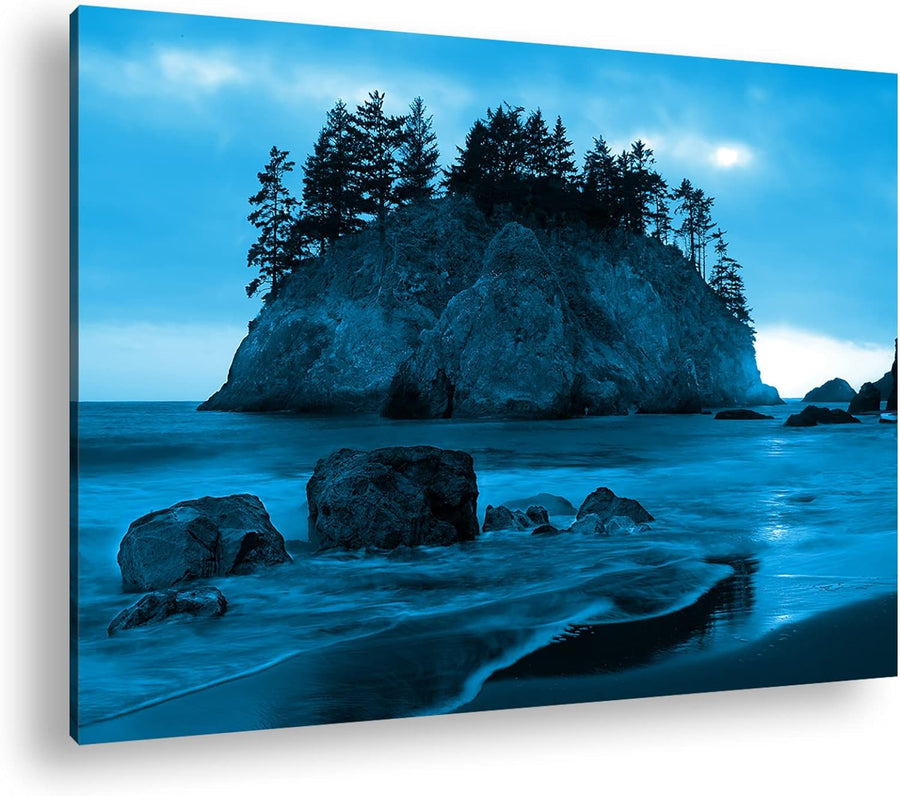 deyoli traumhafte Insel Format 80x60 Effekt: Monocrome Blau als Leinwandbild, Motiv fertig gerahmt a