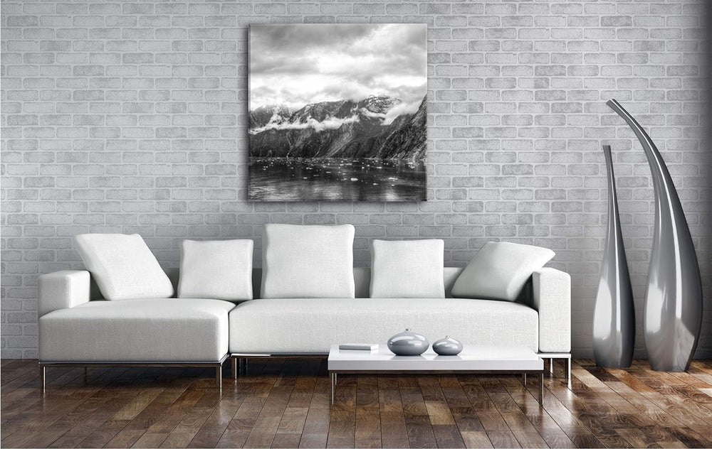deyoli Tracy Arm Fjord bewölkt in Alaska im Format: 70x70 Effekt: Schwarz&Weiss als Leinwandbild, Mo
