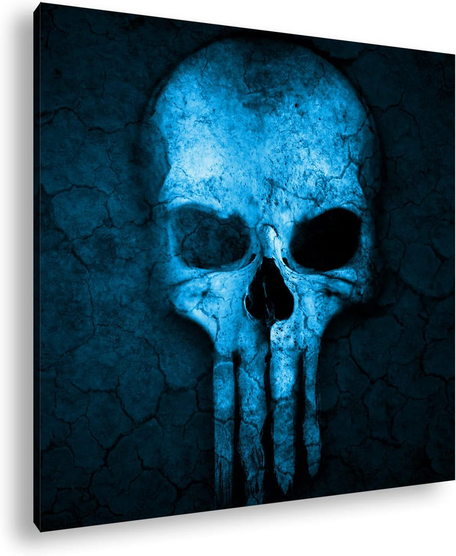 deyoli Toten Schädel Format: 70x70 Effekt: Monocrome Blau als Leinwand, Motiv fertig gerahmt auf Ech