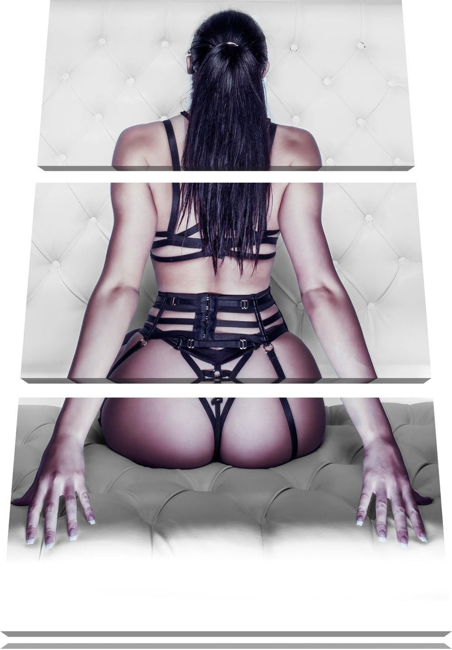 Pixxprint Brünette Frau in sexy Dessous als Leinwandbild/Grösse: 3 Teilig (120x80 cm) cm/Wandbild/Ku