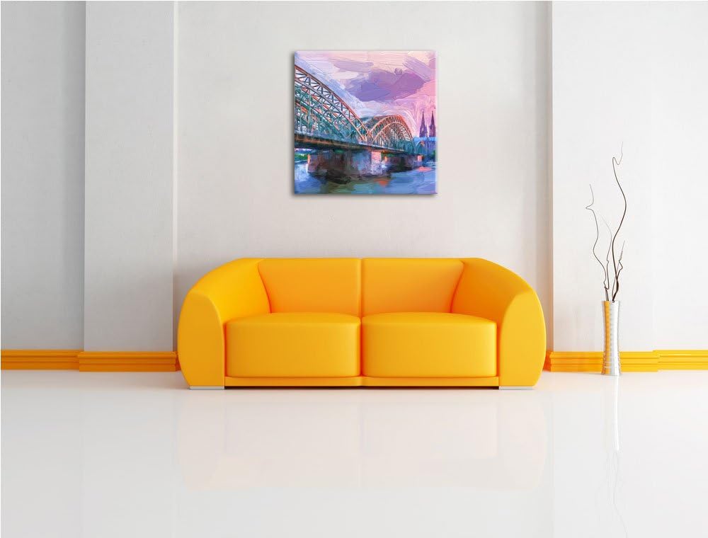 Pixxprint Brücke Kölner Dom als Leinwandbild Quadratisch | Grösse: 70x70 | Wandbild| Kunstdruck | fe