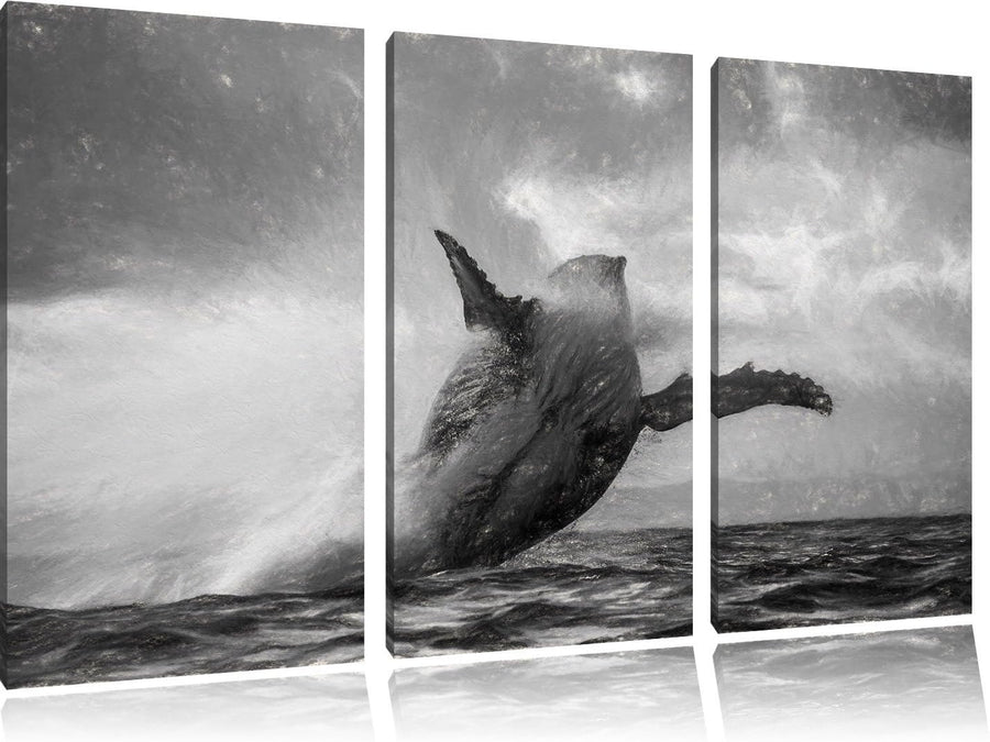 Pixxprint Buckelwale Kanada Kohle Effekt 3-Teiler Leinwandbild 120x80 Bild auf Leinwand