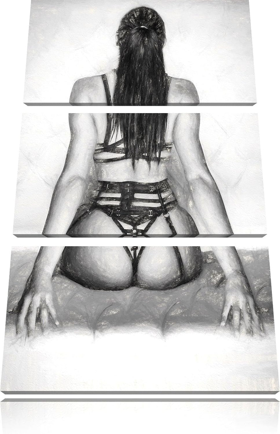 Pixxprint Brünette Frau in sexy Dessous Kunst Kohle Effekt 3-Teiler Leinwandbild 120x80 Bild auf Lei