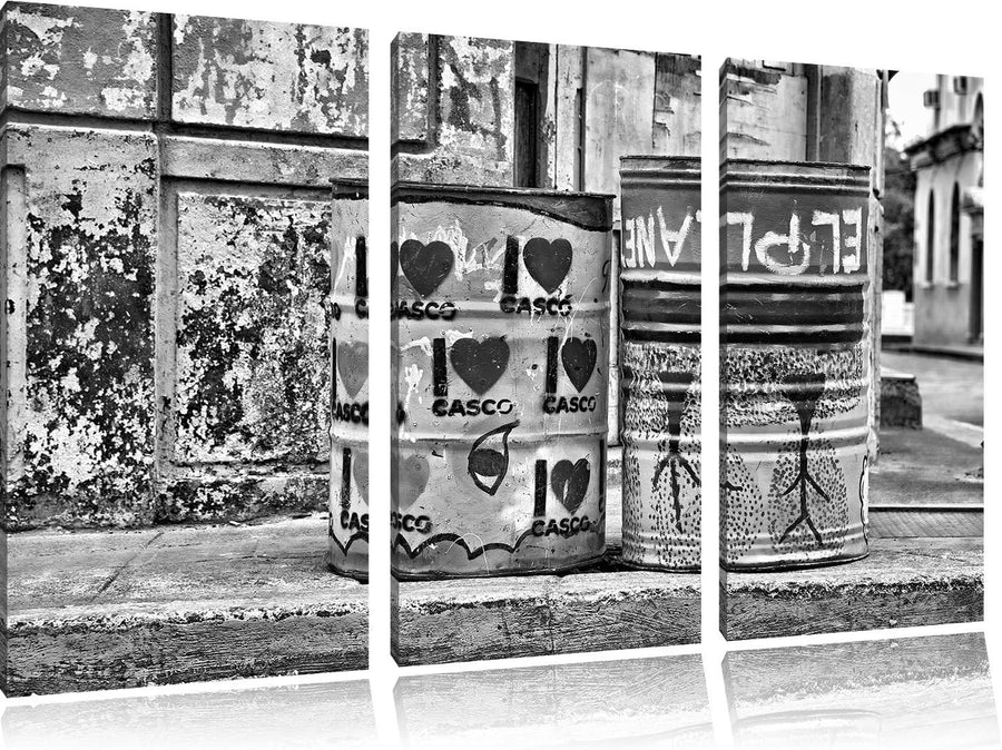 Pixxprint buntbemalte Fässer / 3-Teilig/Gesamtmass 120cm Leinwandbild bespannt auf Holzrahmen/Wandbi