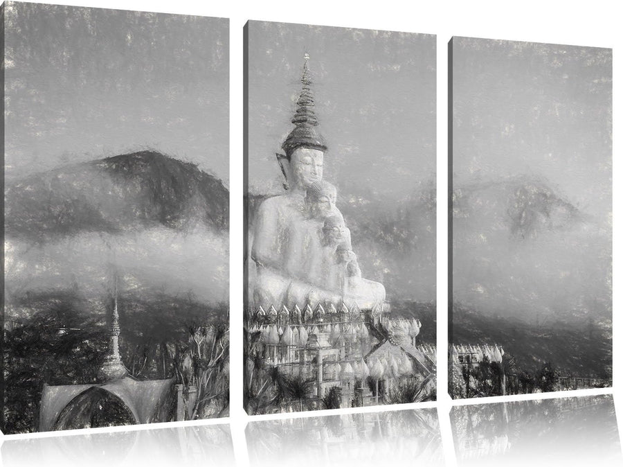 Pixxprint Buddha-Skulptur in Thailand als Leinwandbild/Grösse: 3 Teilig (120x80 cm) cm/Wandbild/Kuns