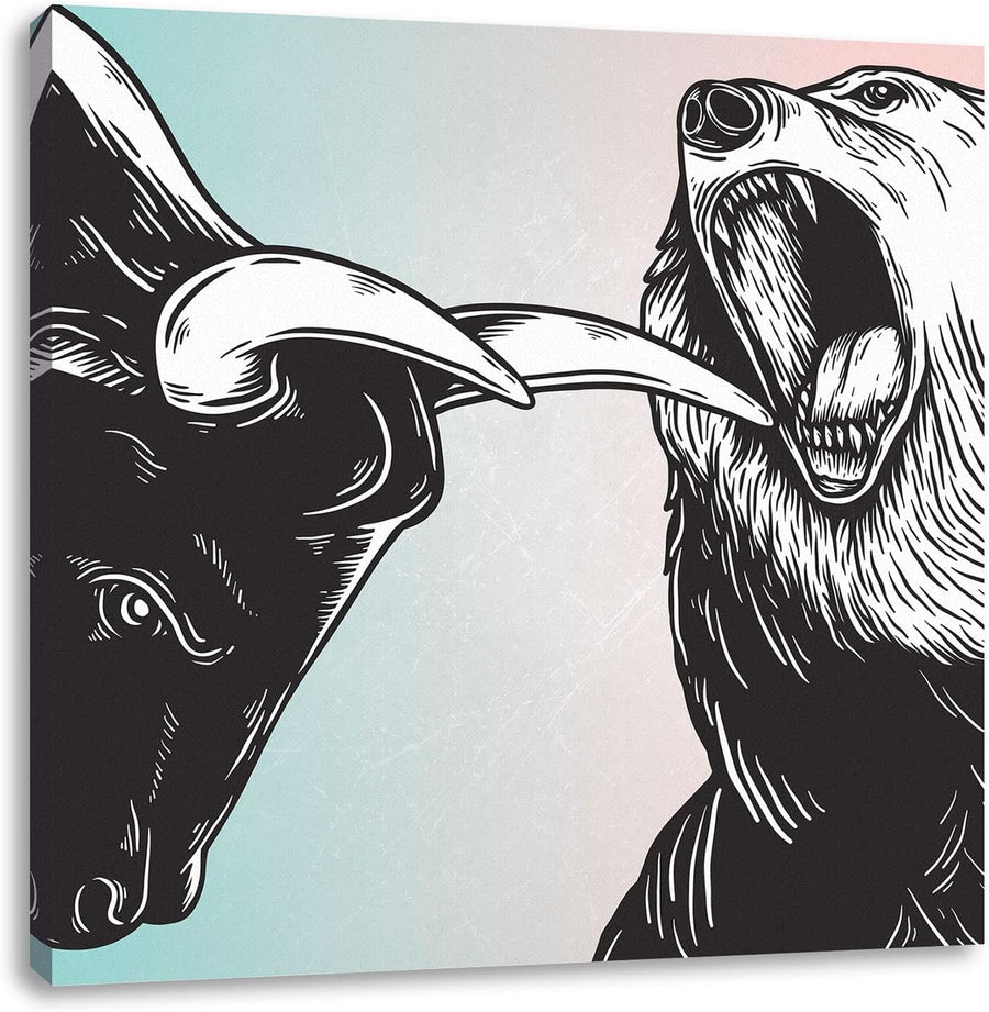 Pixxprint Bulle und Bär Aktienmarkt als Leinwandbild Quadratisch| Grösse: 60x60 cm | Wandbild | Kuns
