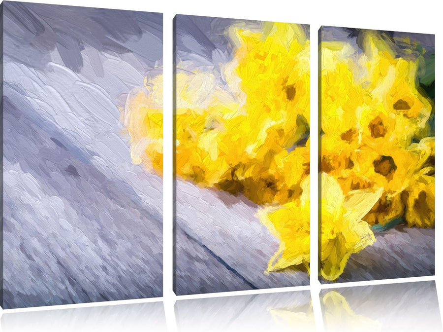Pixxprint Bündel gelber Narzissen Kunst Pinsel Effekt 3-Teiler Leinwandbild 120x80 Bild auf Leinwand