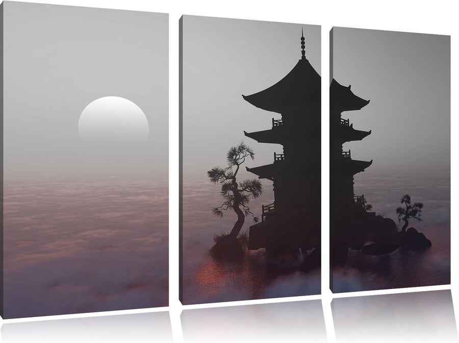 Pixxprint Buddhistischer Tempel in Asien als Leinwandbild/Grösse: 3 Teilig (120x80 cm) cm/Wandbild/K