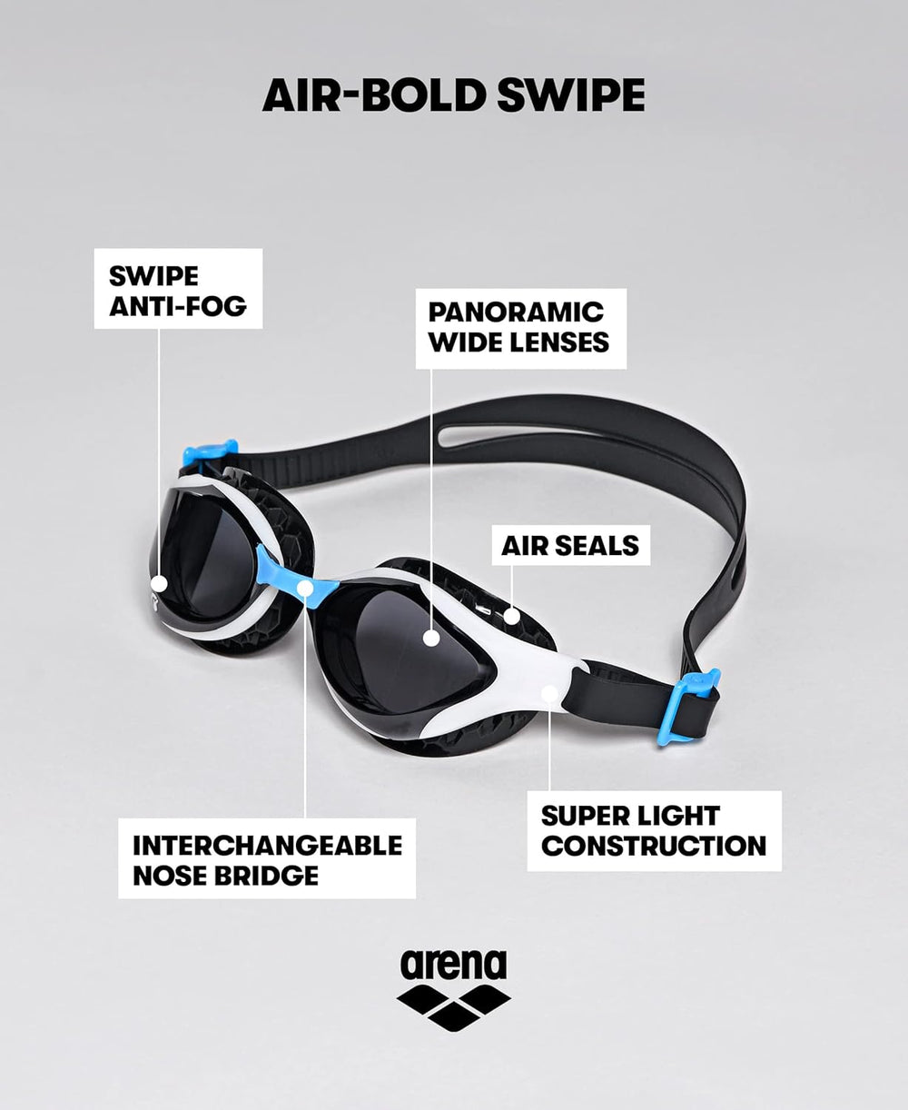 Arena Unisex – Erwachsene Air-Bold Swipe Schwimmbrillen, Blue-Blue-Black, One Size