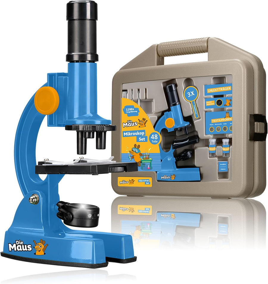 DieMaus Kindermikroskop Set mit Koffer - 100x-900x Vergrösserung, LED-Beleuchtung, inkl. Zubehör und