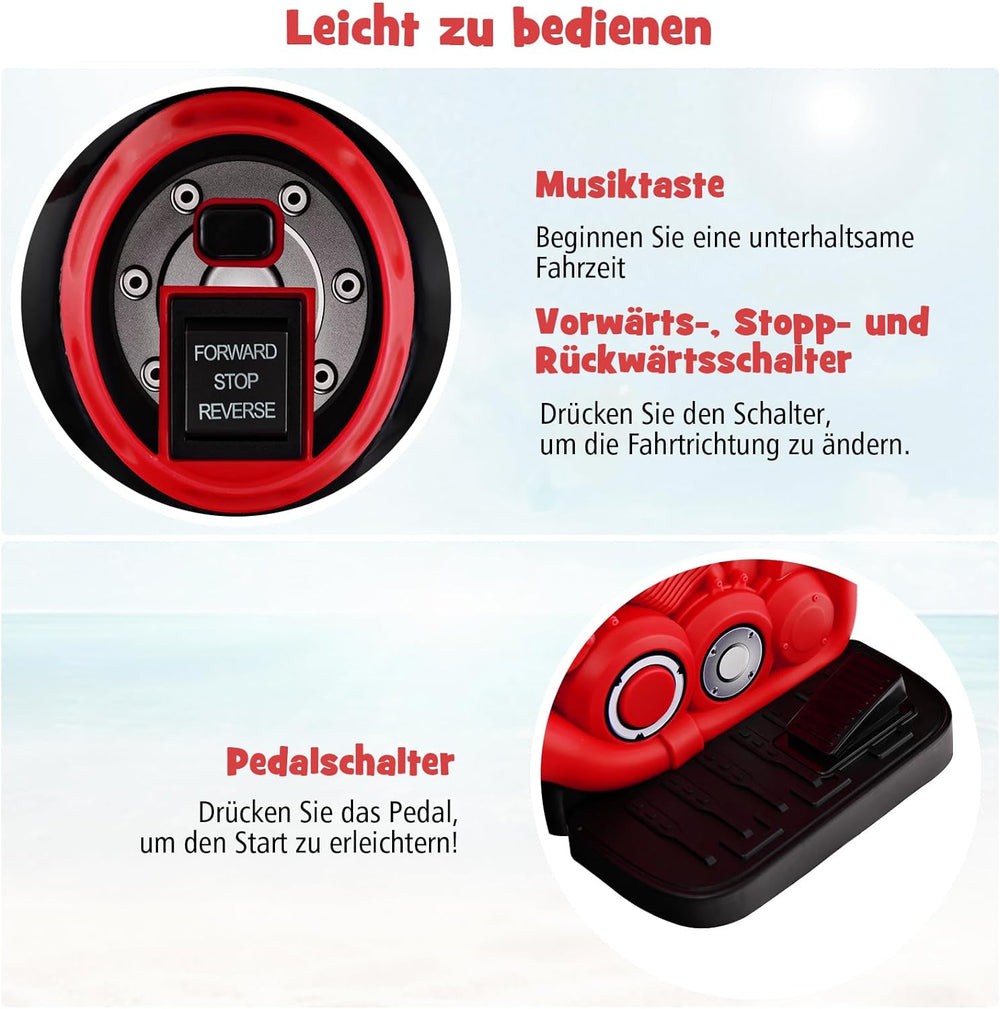 COSTWAY Kinder Sitzbagger mit Stauraum unter dem Sitz, Kinderbagger mit Hupen und Verstellbarer Scha
