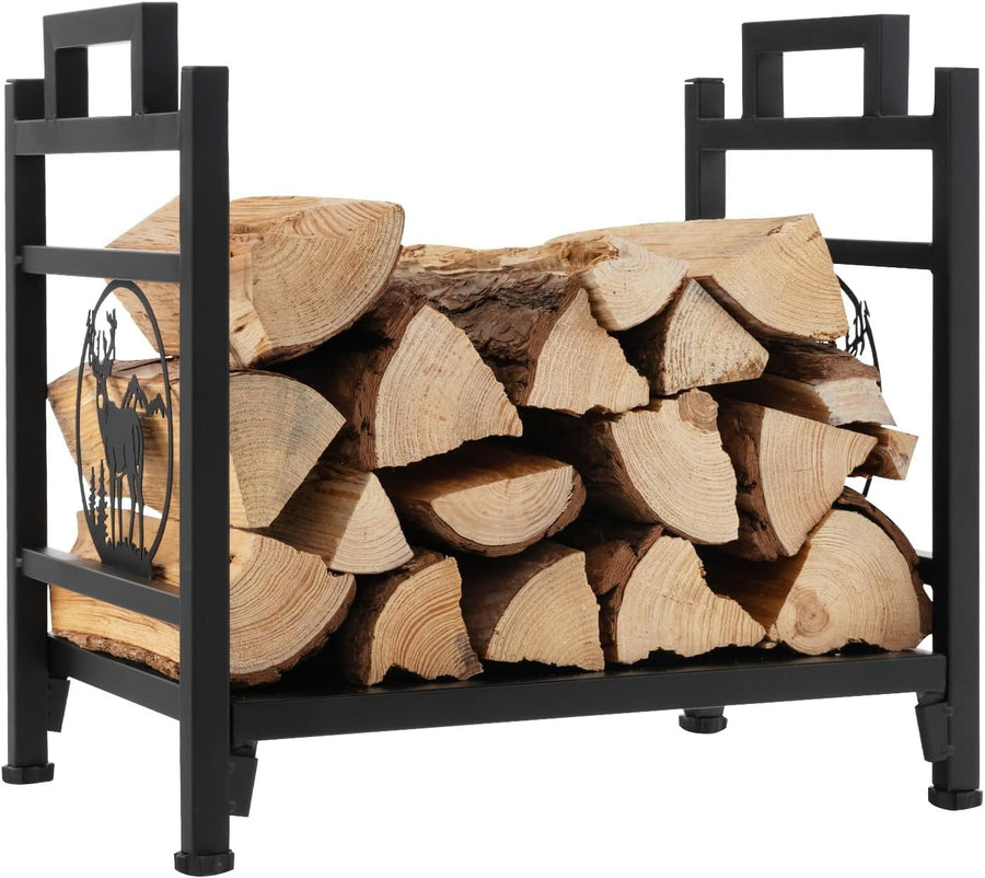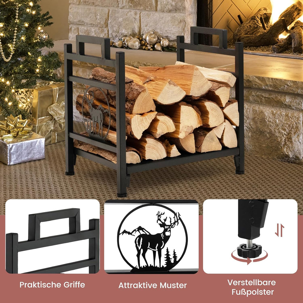 COSTWAY Kaminholzregal, Kaminholzständer aus Metall mit Griffen & verstellbaren Fusspolstern, Feuerh