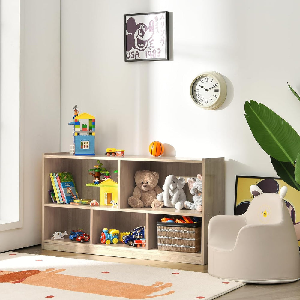 COSTWAY Kinder Spielzeugschrank Holz, Spielzeugregal mit 2 grossen Fächern und 3 kleinen Fächern, of