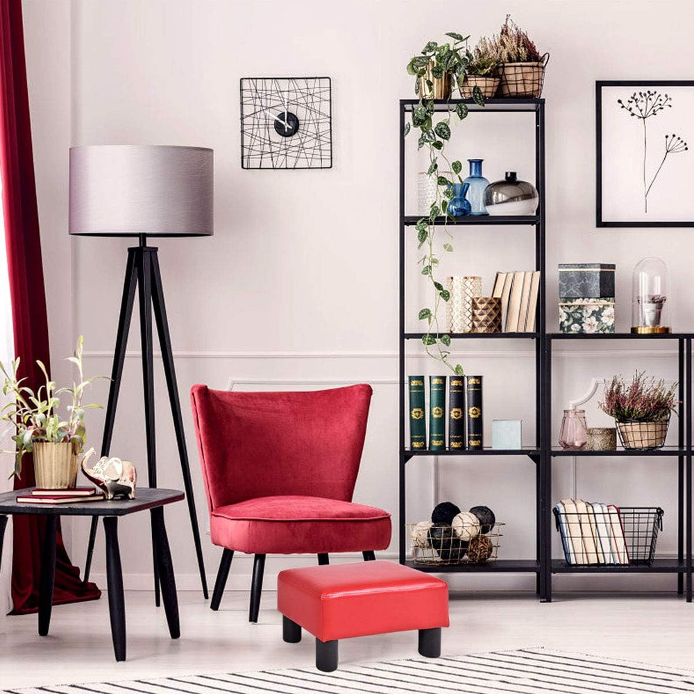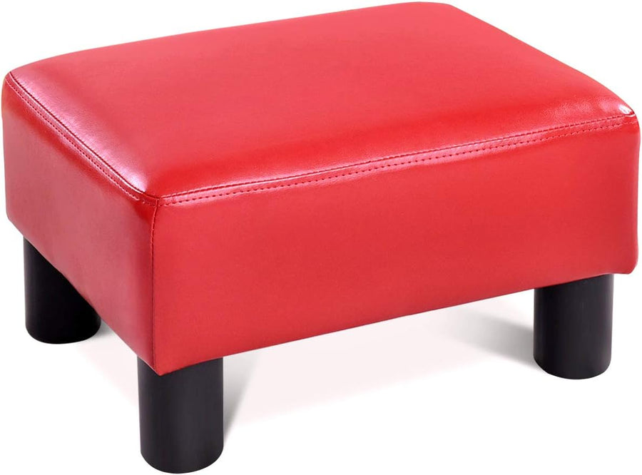 COSTWAY Kleiner Fusshocker, Hocker aus PU, rechteckiger Sitzhocker mit gepolstertem Sitz, Fussbank F