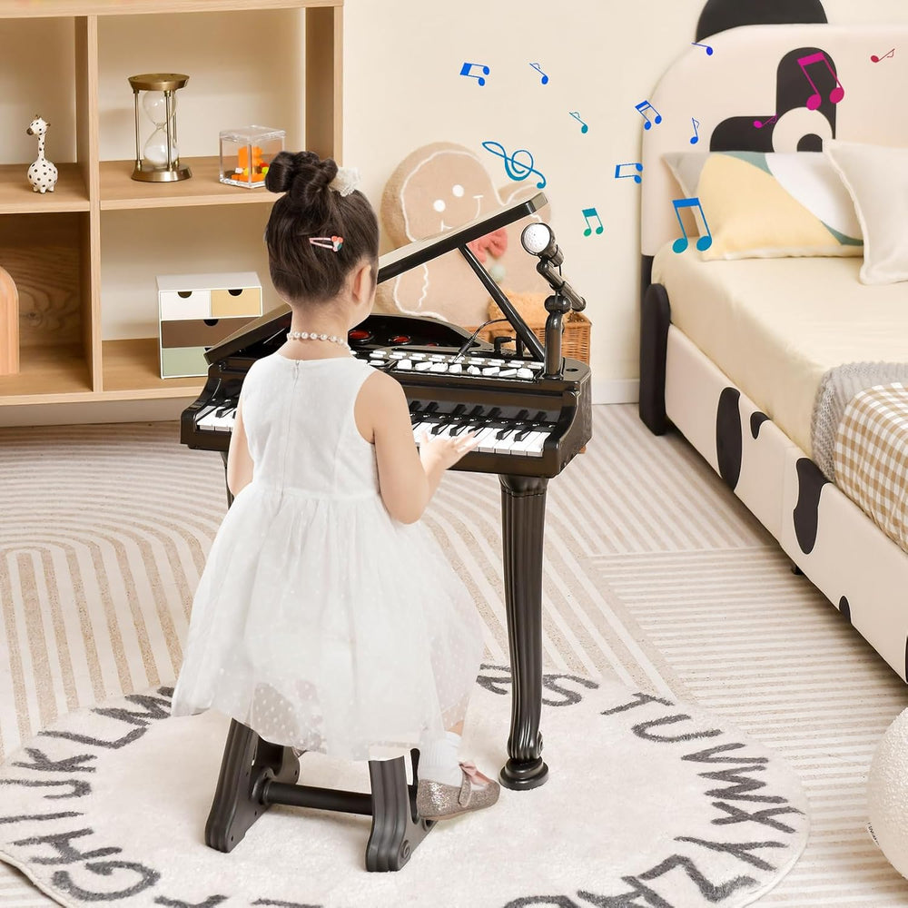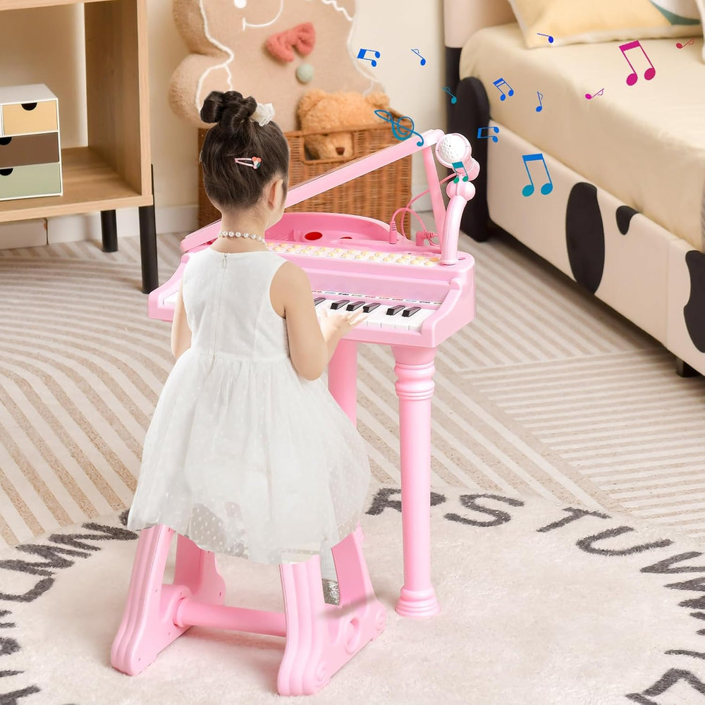COSTWAY Kinder Keyboard mit 37 Tasten & Hocker, elektronische Klaviertastatur tragbar mit Mikrofon,