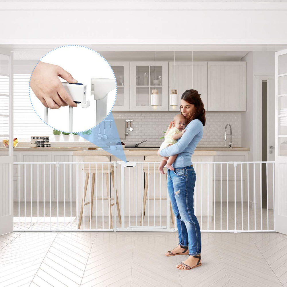 COSTWAY Kaminschutzgitter klappbar, Laufgitter mit Sicherheitstür, Ofenschutzgitter inkl. Wandhalter