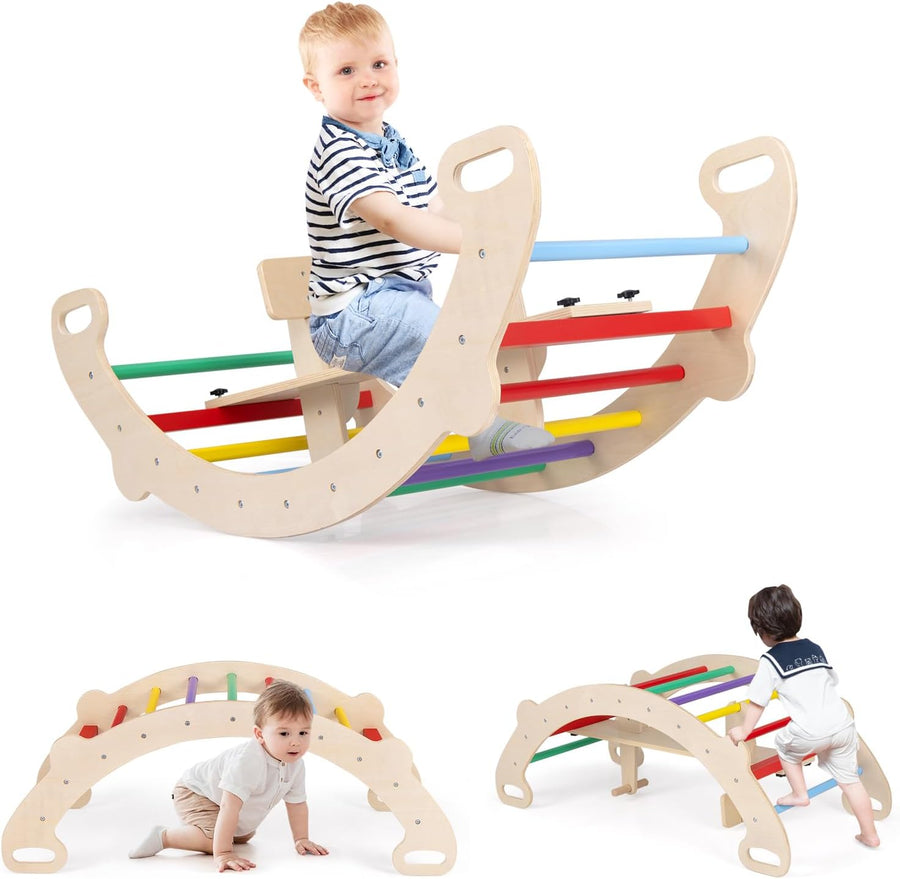 COSTWAY Kletterbogen, mit abnehmbarem Sitz, 4 in 1 Klettergerüst Indoor zum Wippen, Schaukeln, Klett