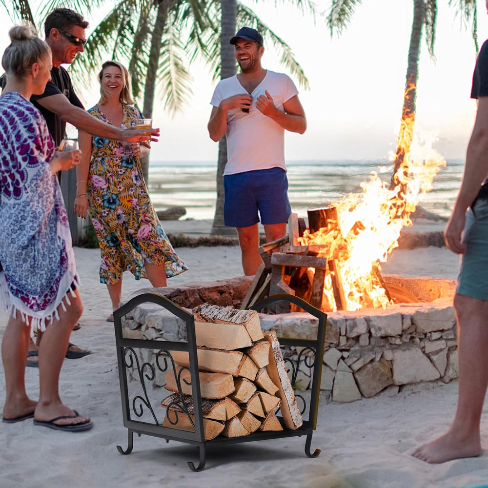 COSTWAY Kaminholzregal Metall, Brennholzregal belastbar bis 50kg, Feuerholzregal Holzscheitregal, Ho