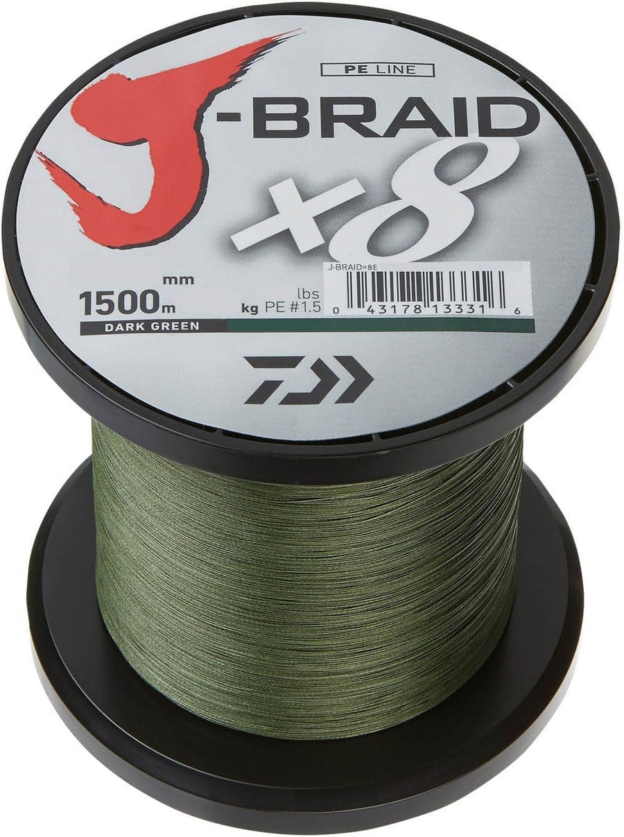 Daiwa J-Braid X8, 1500m dunkelgrün - geflochtene Angelschnur Dm: 0,22 mm, Dm: 0,22 mm