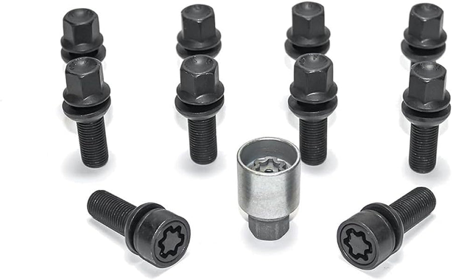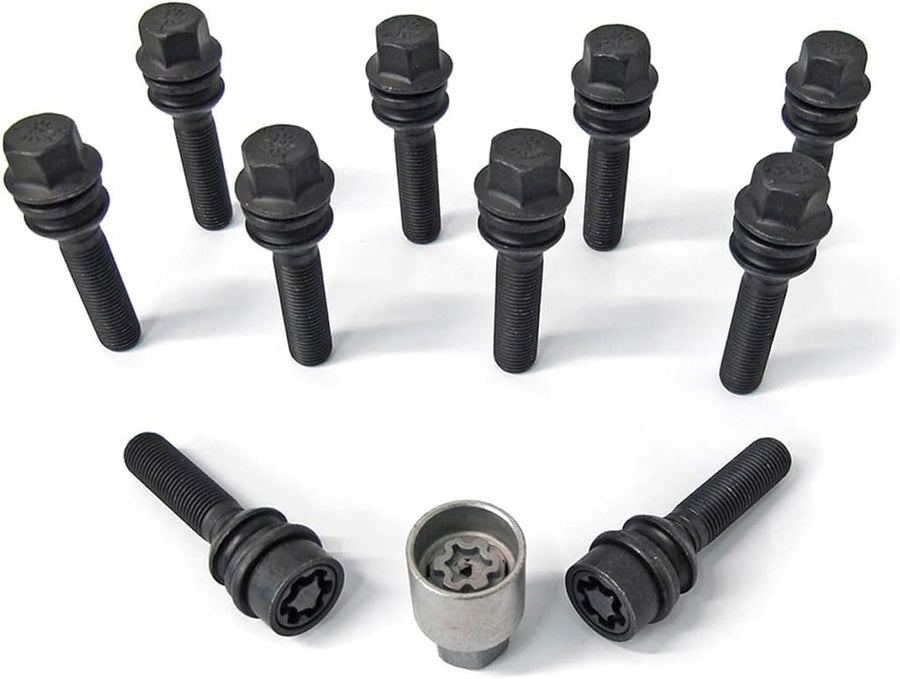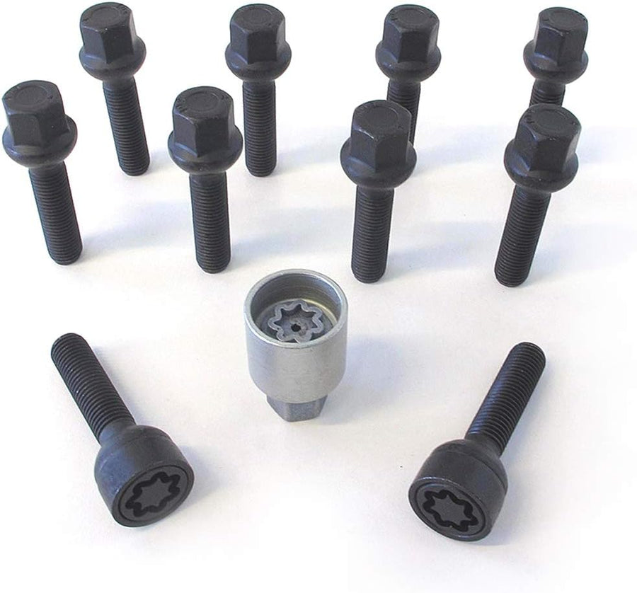 H&R Radschrauben Satz Kegelbund M12x1.50 - Länge 35mm - 10 Stück - inkl. Felgenschloss
