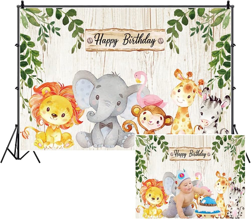Renaiss 3x2.5m Dschungel Thema Geburtstag Hintergrund Safari Tiere Alles Gute zum Geburtstag Fotogra