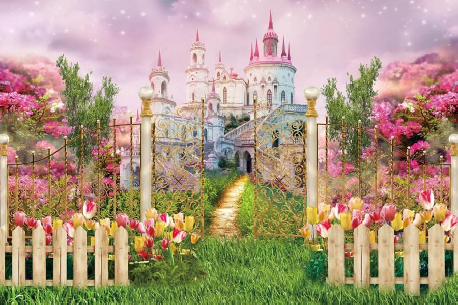 Renaiss 3x2.5m Frühlingsblume Garten Landschaft Hintergrund Prinzessin Schloss Pastell Wolken Fotogr