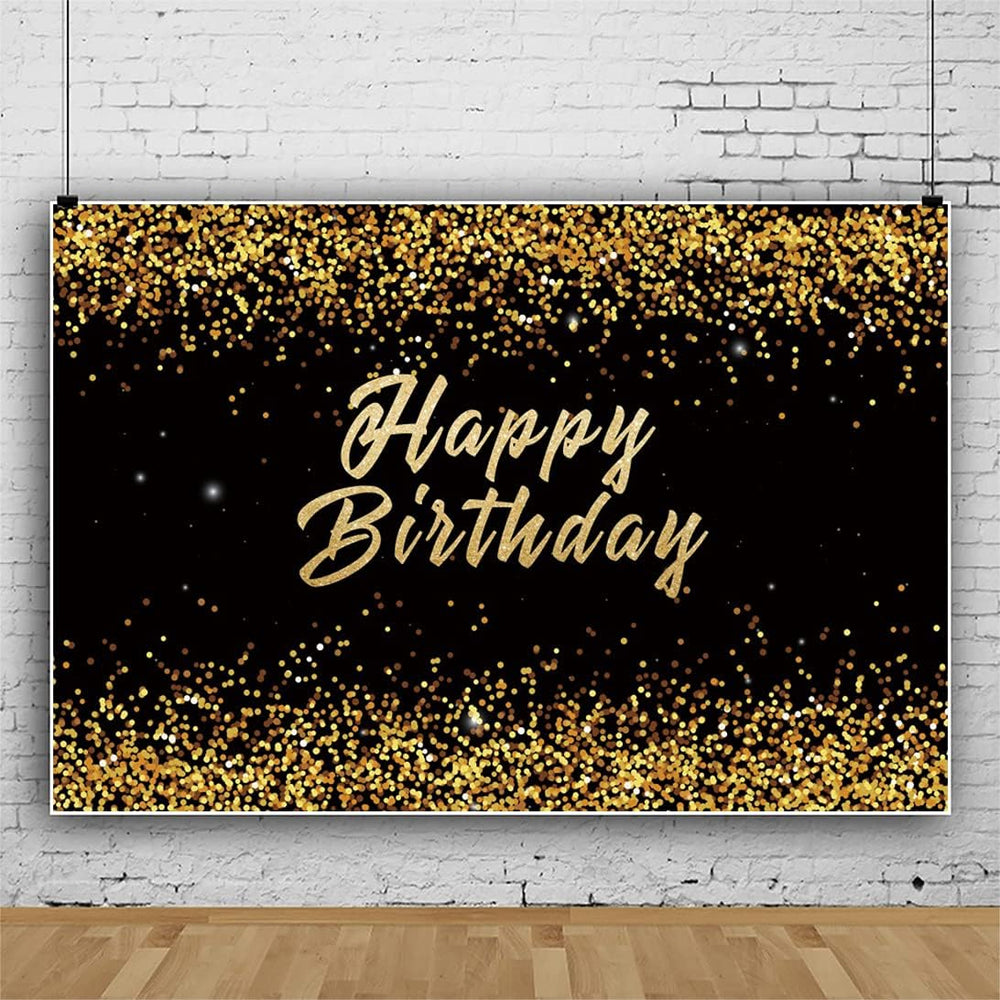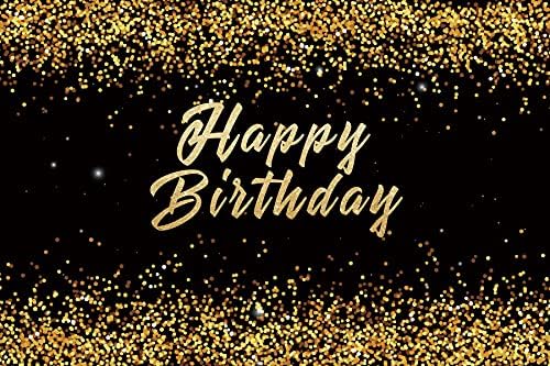 Renaiss 3x2.5m Gold und Schwarz Happy Birthday Hintergrund Goldene Flecken Fotografie Hintergrund Vi