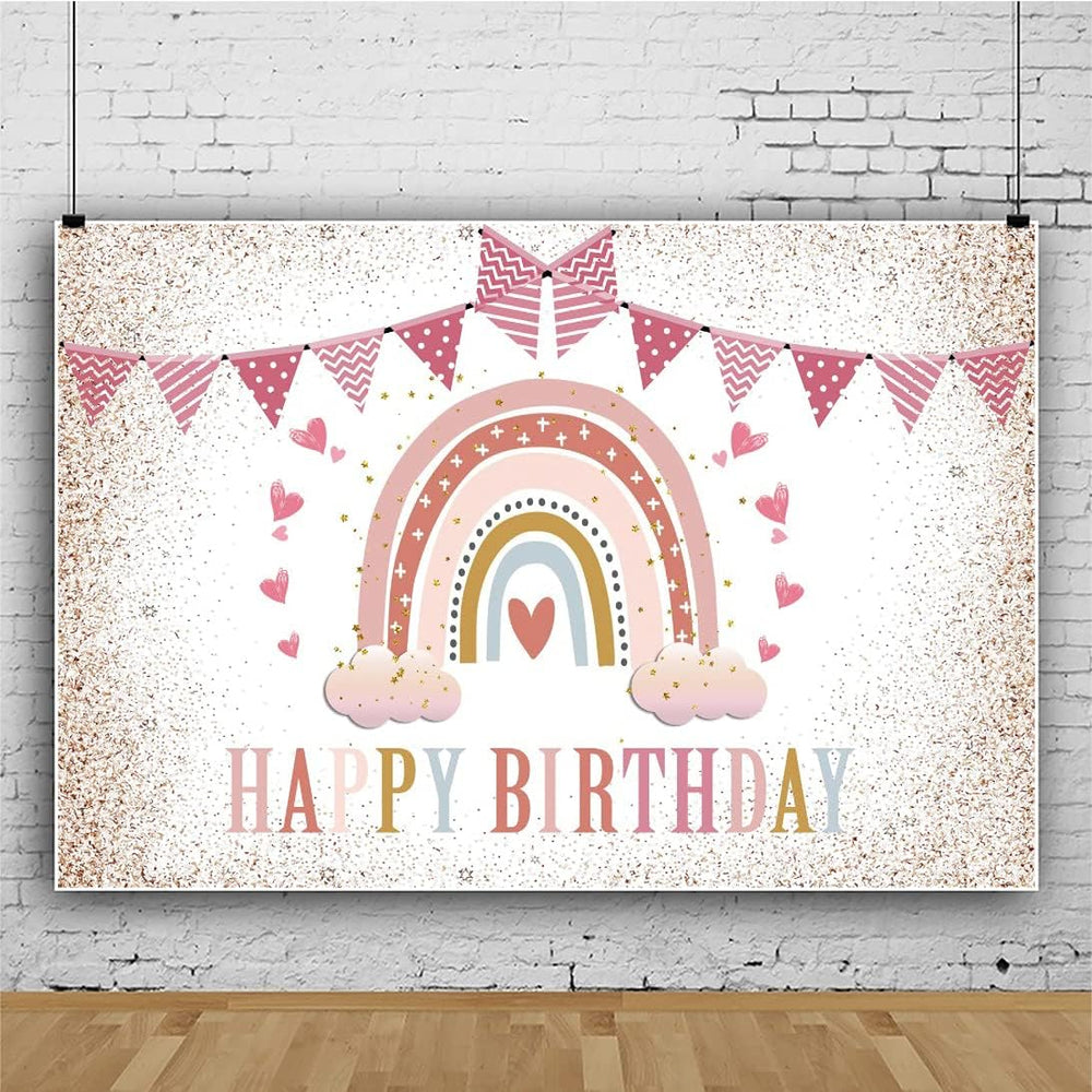 Renaiss 3x2.5m Regenbogen Happy Birthday Hintergrund Wolke Rosa Glitzer Dekoration Fotografie Hinter