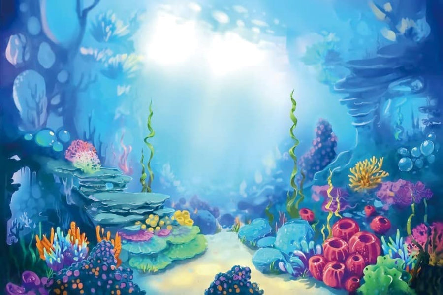 Renaiss 3x2.5m Cartoon Meeresboden Hintergrund Bunte Unterwasserwelt Korallen Meer Fotografie Hinter