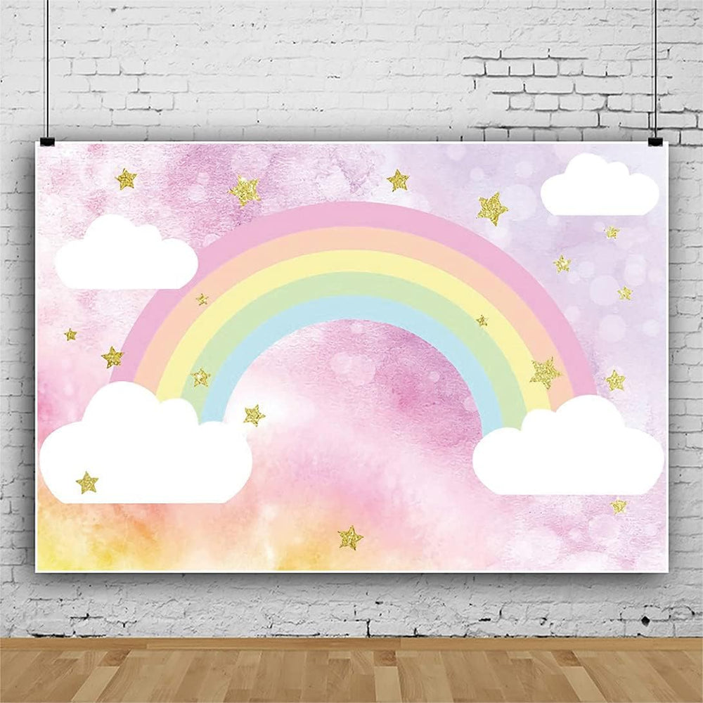 Renaiss 3x2.5m Regenbogen Hintergrund Rosa Himmel Wolke Glitzer Sterne Fotografie Hintergrund Baby D