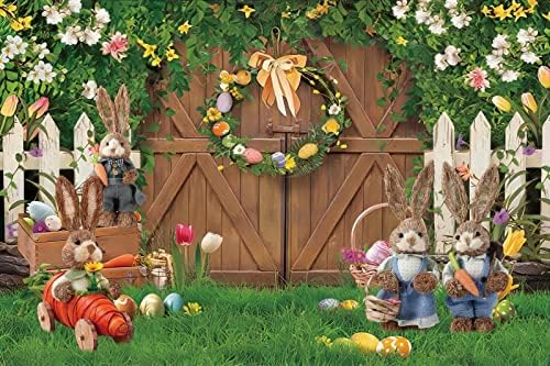 Renaiss 3x2.5m Frühling Ostern Hintergrund für Fotografie Holz Tür Gras Blumen Ostereier Hase Hinter