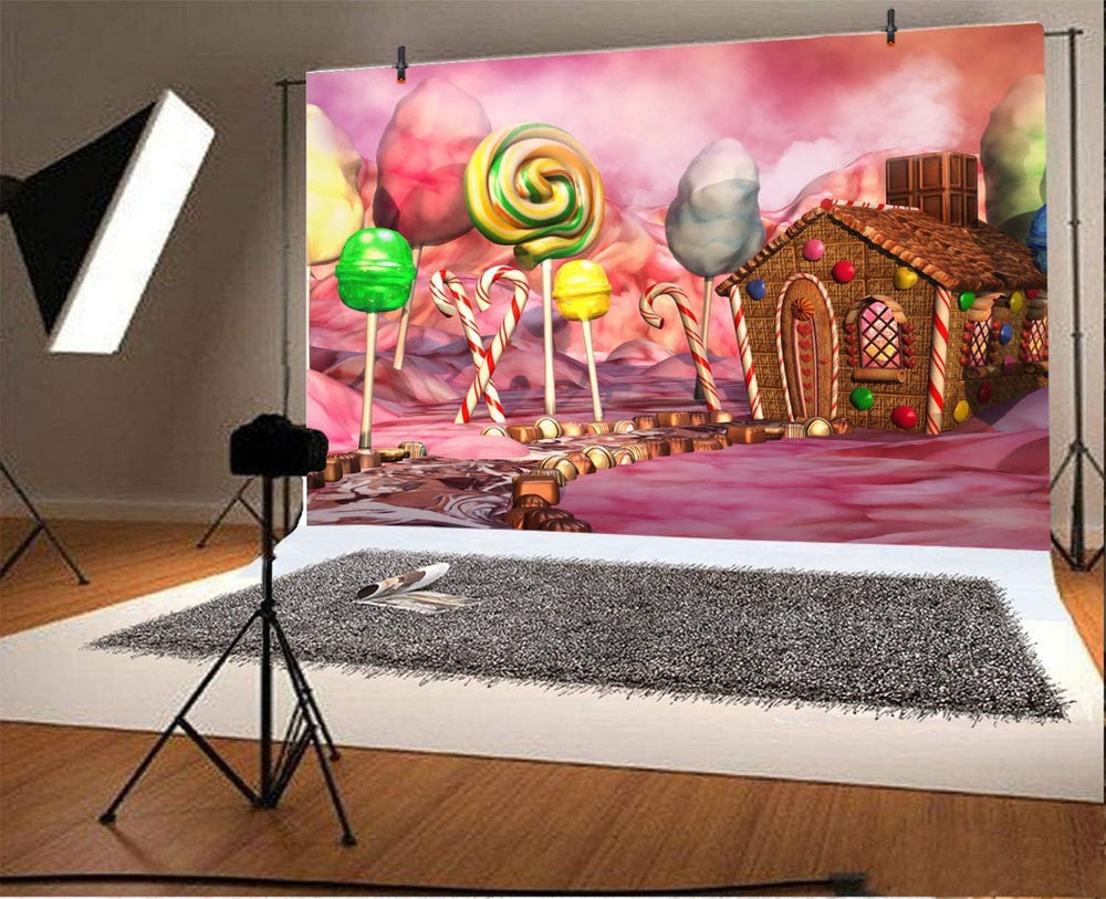 Renaiss 3x2.5m Candy House Hintergrund Rosa Märchen Lollipop Marshmallow Fotografie Hintergrund Baby