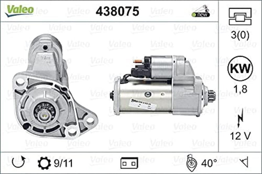VALEO 438075 Starter Nennleistung: 1,8 kW Stop & Start: NO Zähnezahl: 11 zähne Spannung: 12 V Drehri