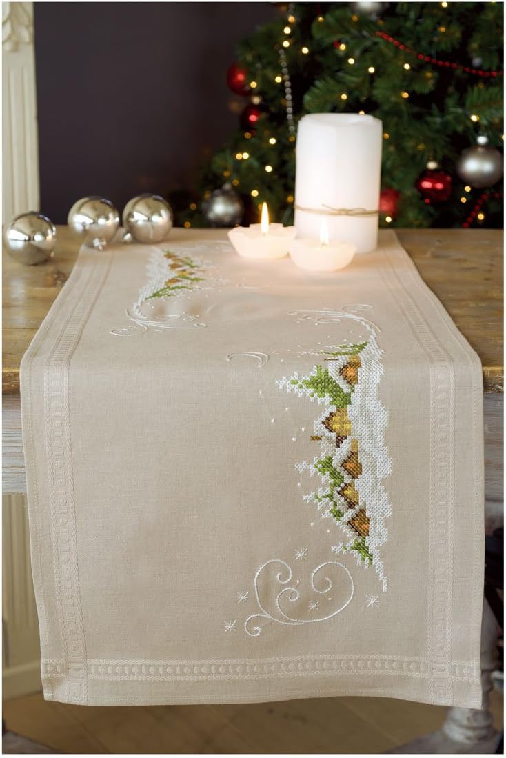 Vervaco Stickpackung Tischläufer Kreuzstich vorgedruckt, Baumwolle, weiss, 40 x 100 x 0,3 cm