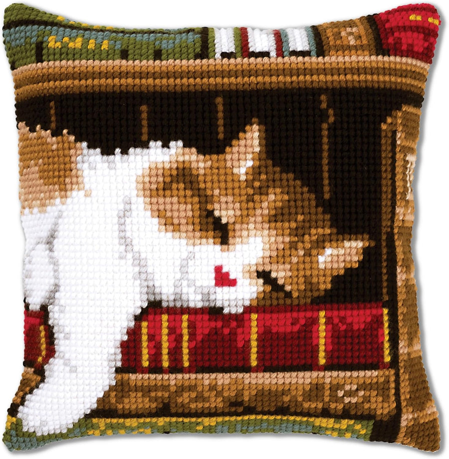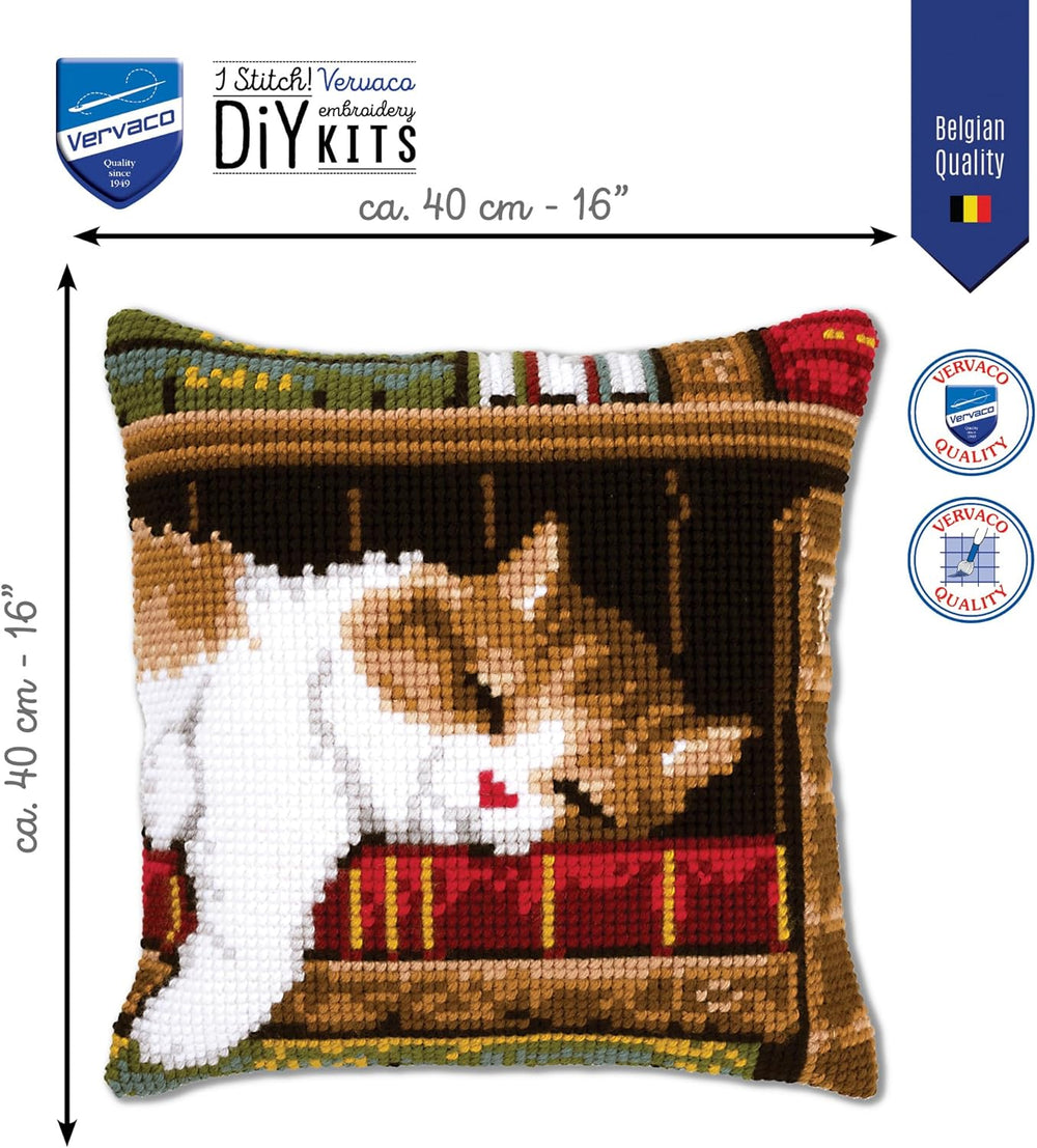Vervaco Schlafende Katze Kreuzstichkissen/Stickkissen vorgedruckt, Baumwolle, Mehrfarbig, 40 x 40 x