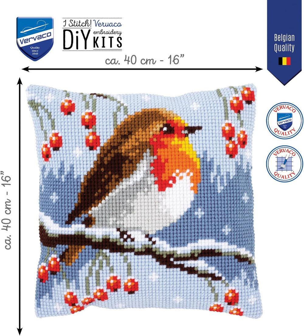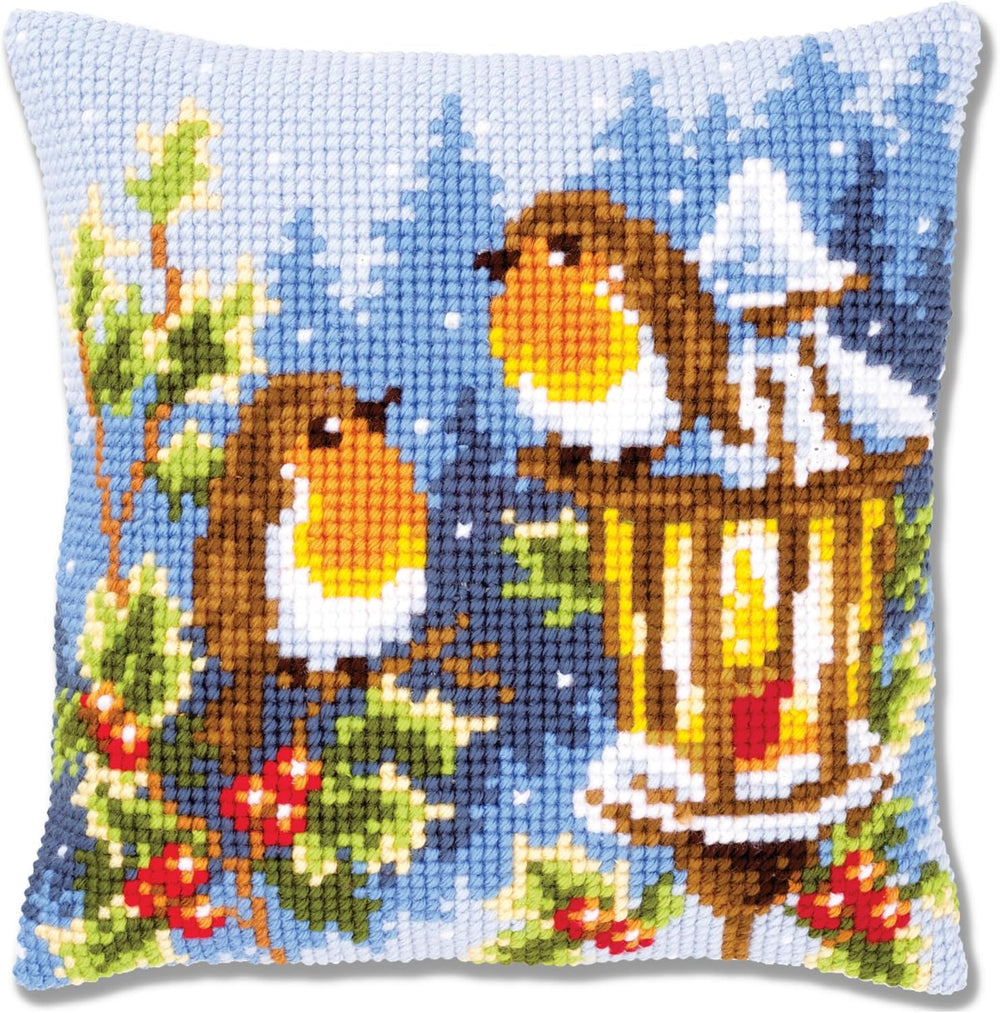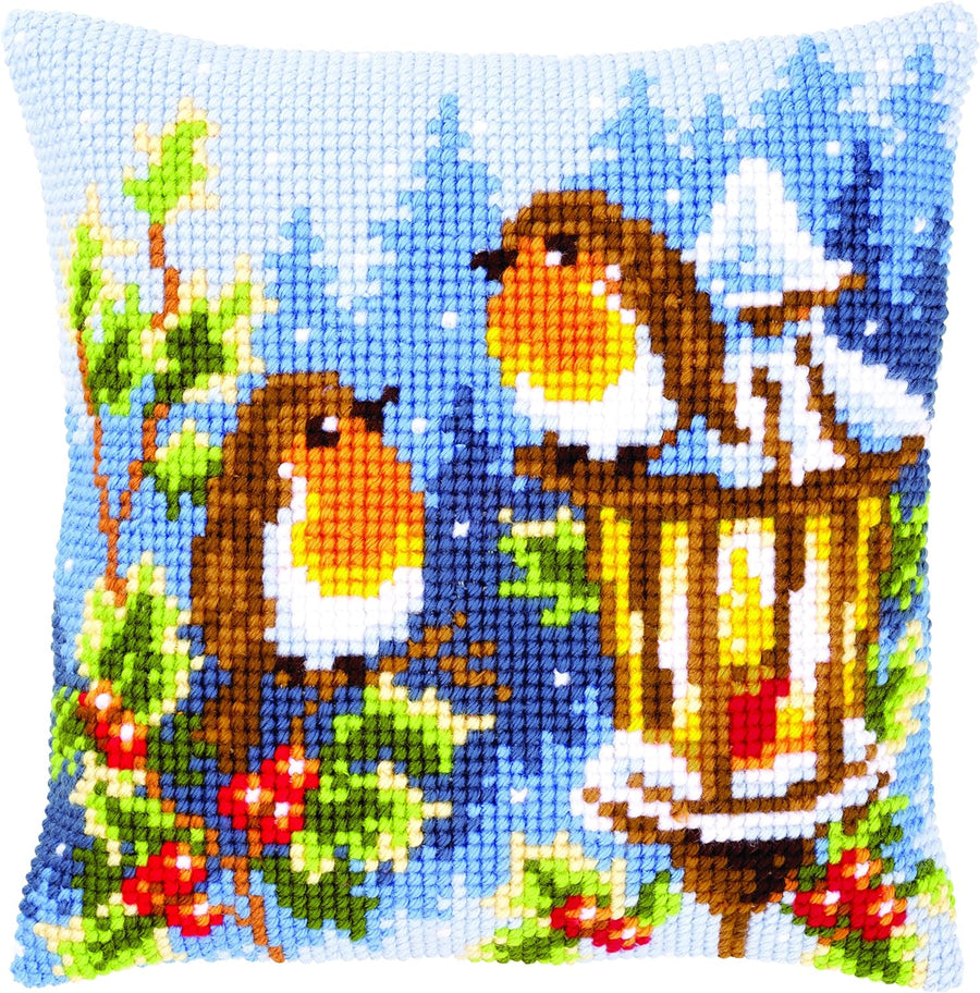 Vervaco Rotkehlchen mit Lampe Kreuzstichkissen/Stickkissen inklusive Material, Baumwolle, Mehrfarbig