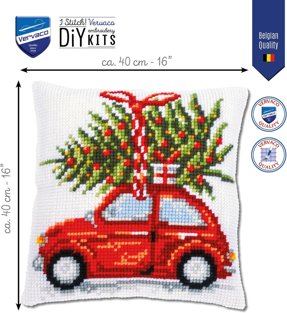Vervaco Set Kreuzstichkissen Weihnachtsauto ecru, ca. 40 x 40 cm