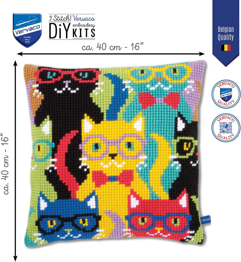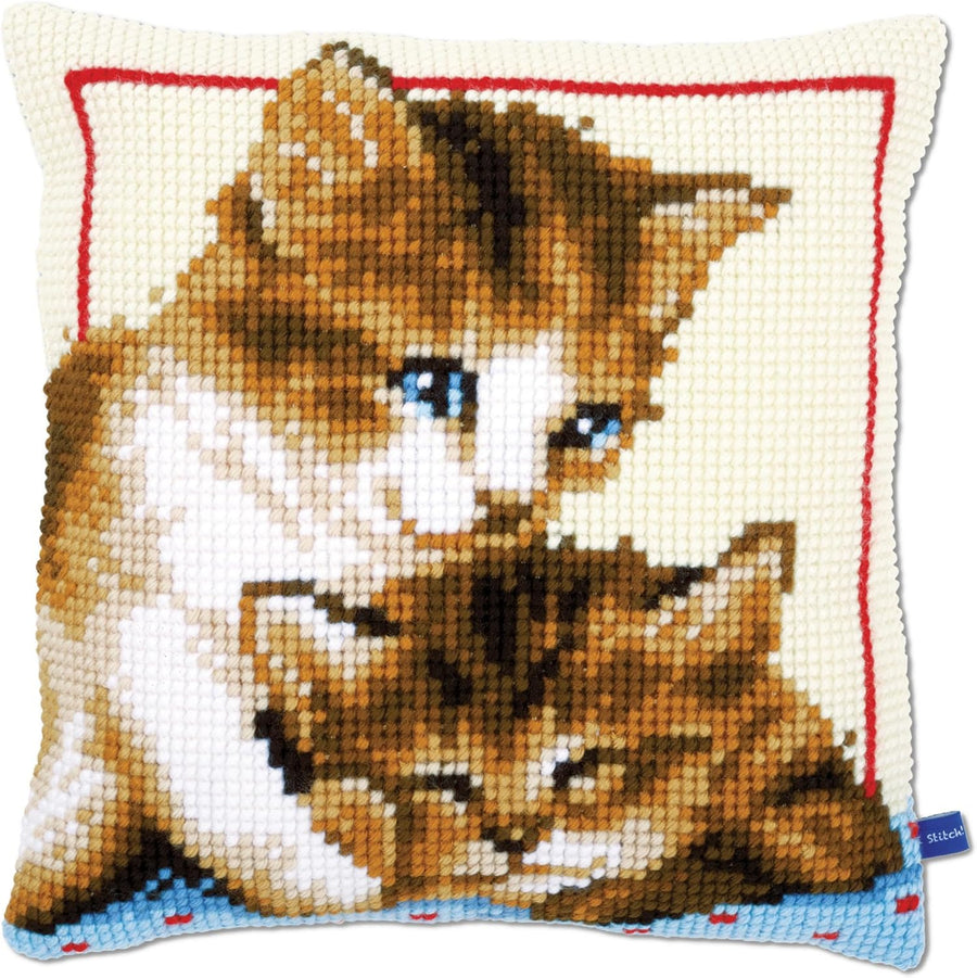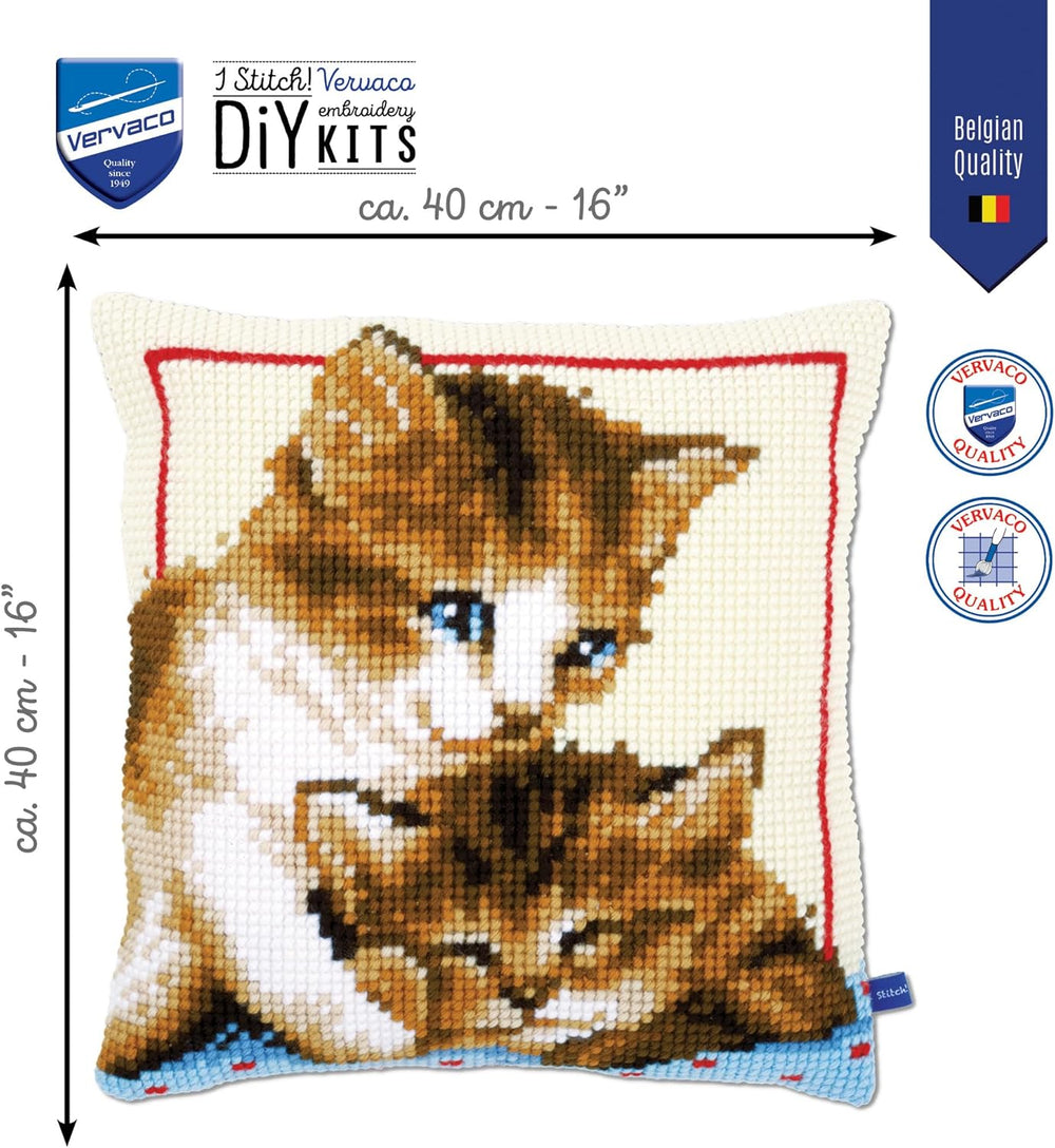 Vervaco Spielende Katzen Kreuzstichkissen/Stickkissen vorgedruckt, Baumwolle, Mehrfarbig, 40 x 40 x
