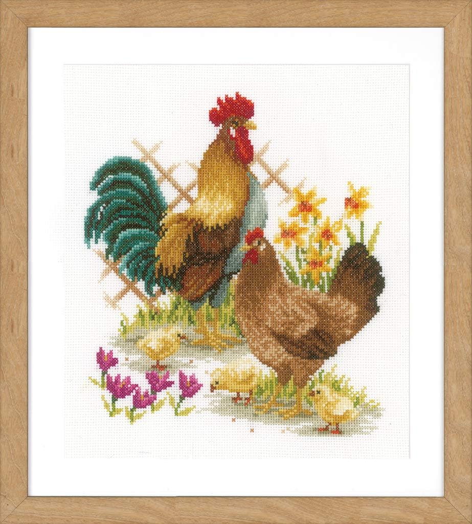 Vervaco Stickpackung Hühnerfamilie, Zählmuster Zählmusterpackung, Baumwolle, Mehrfarbig, 24 x 26 x 0
