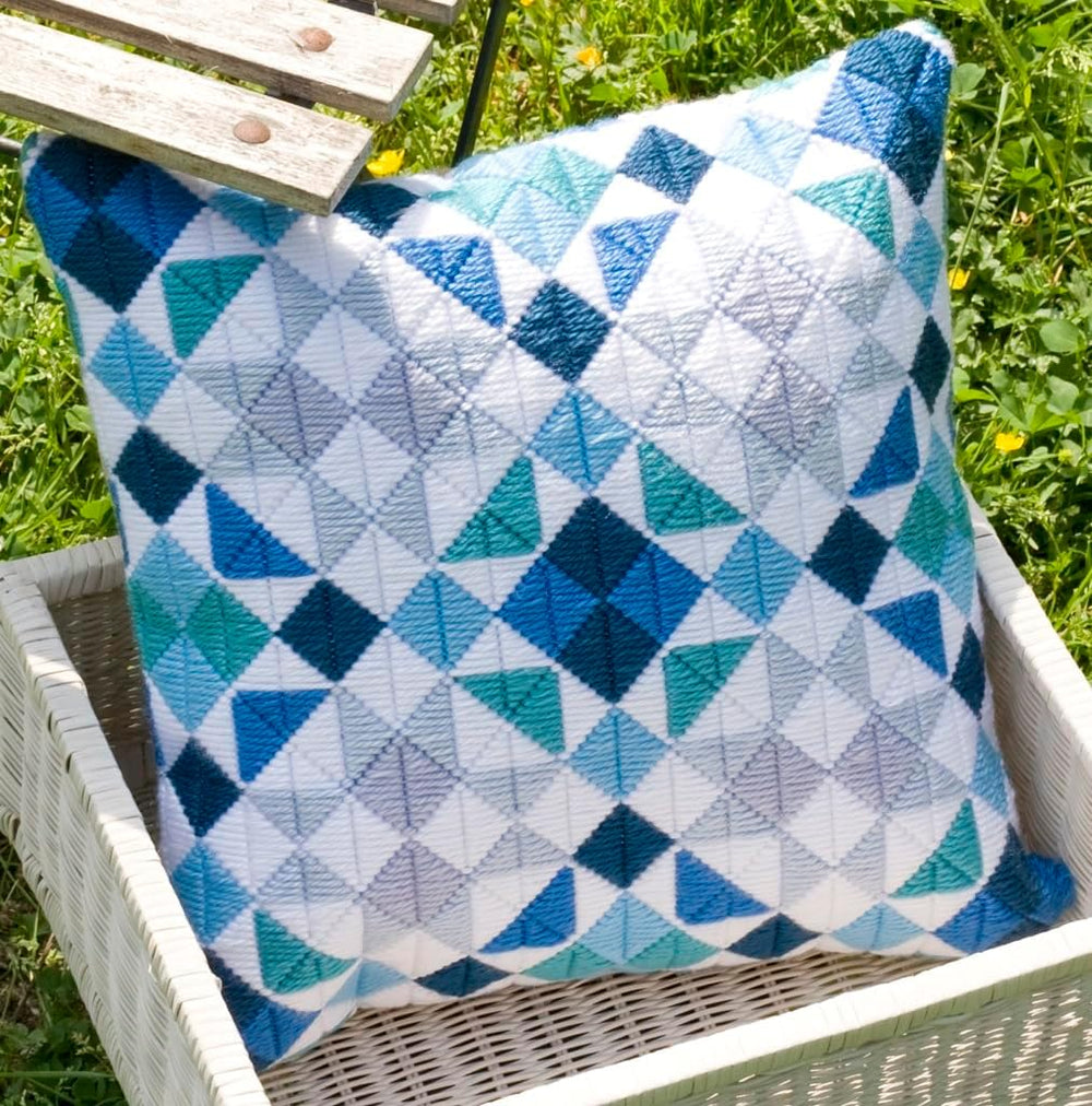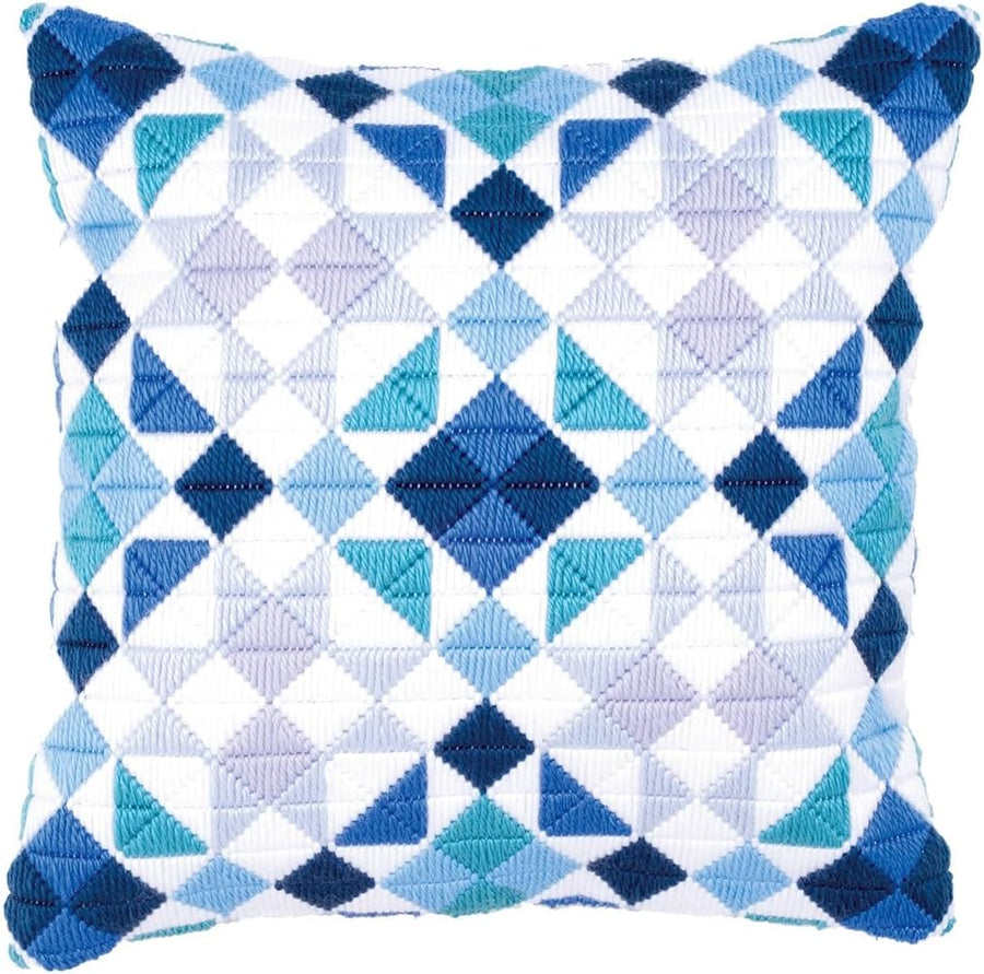 Vervaco Spannstich Stickkissen Rauten in Blau Spannstichkissen, Baumwolle, Mehrfarbig, 40 x 40 x 0.3