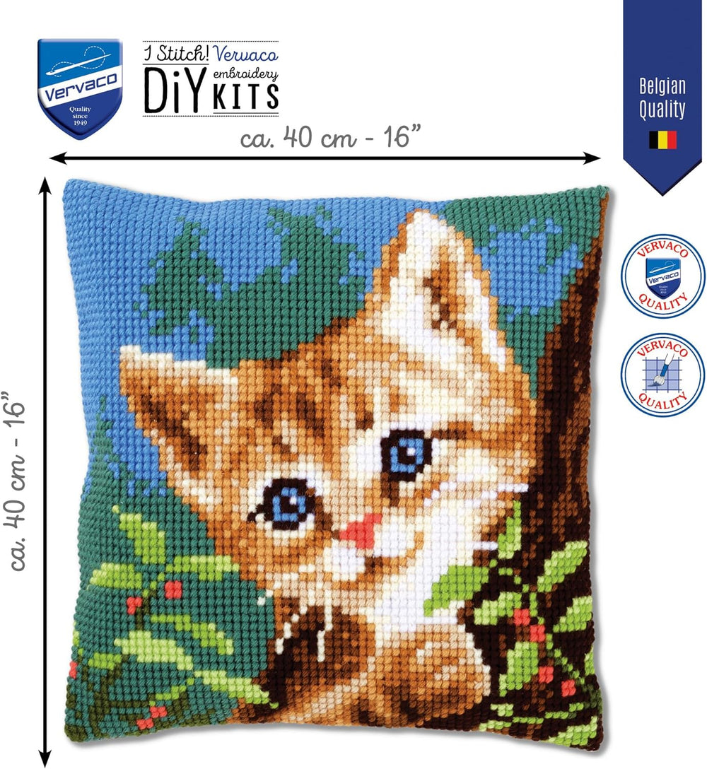 Vervaco Rote Katze Kreuzstichkissen/Stickkissen vorgedruckt, Baumwolle, Mehrfarbig, 40 x 40 x 0.3 cm