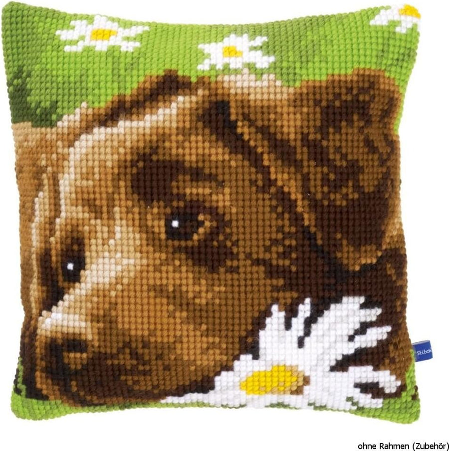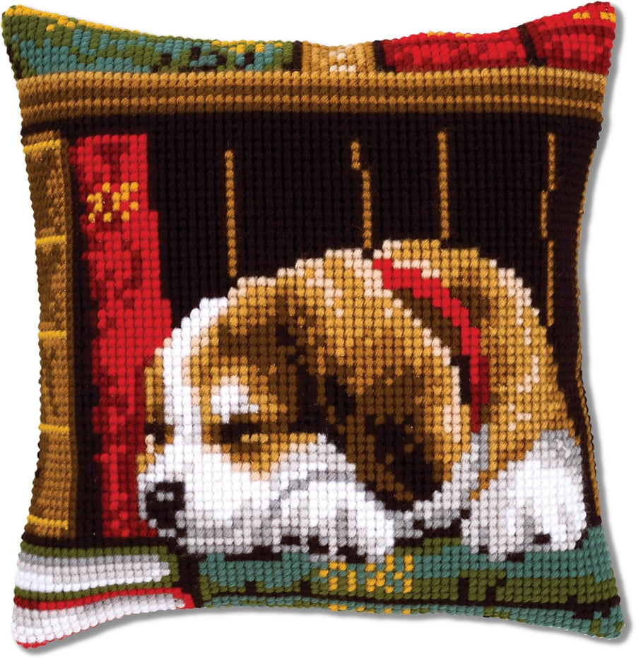 Vervaco Schlafender Hund Kreuzstichkissen/Stickkissen vorgedruckt, Baumwolle, Mehrfarbig, 40 x 40 x