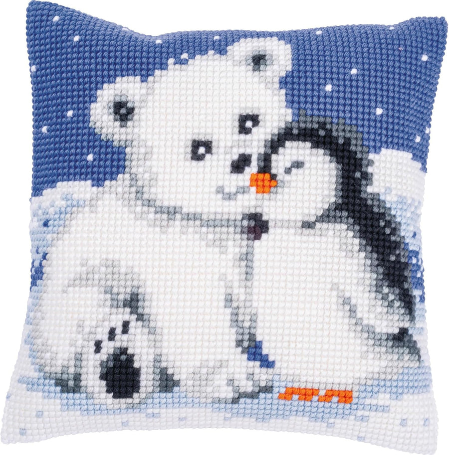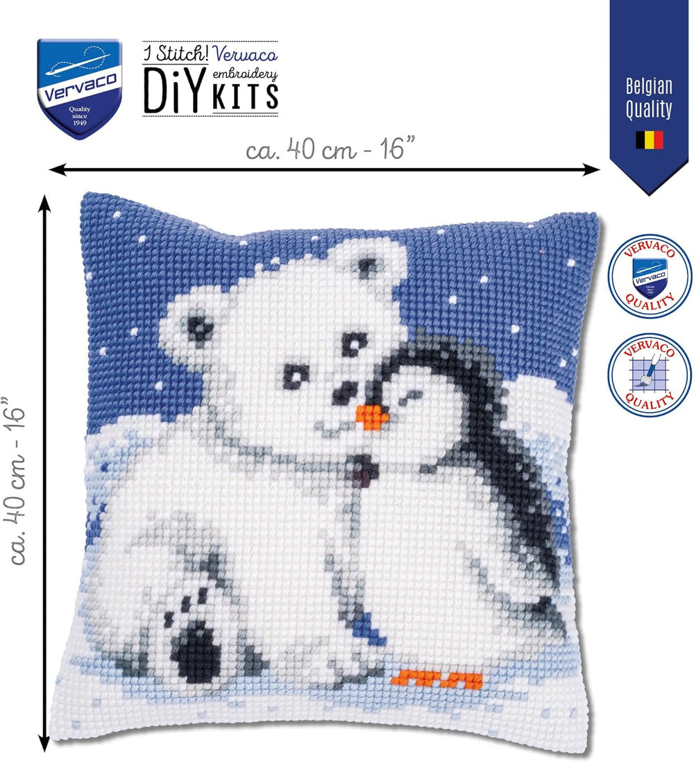 Vervaco Set Kreuzstichkissen Weisser Bär & Pinguin, naturfarben, ca. 40 x 40 cm