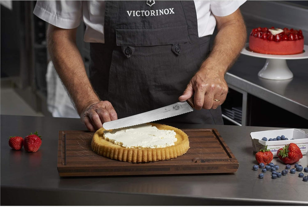 Victorinox Wood, Brot- und Konditormesser, Küchenmesser, Wellenschliff, Extra Scharfe Klinge, Swiss