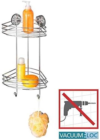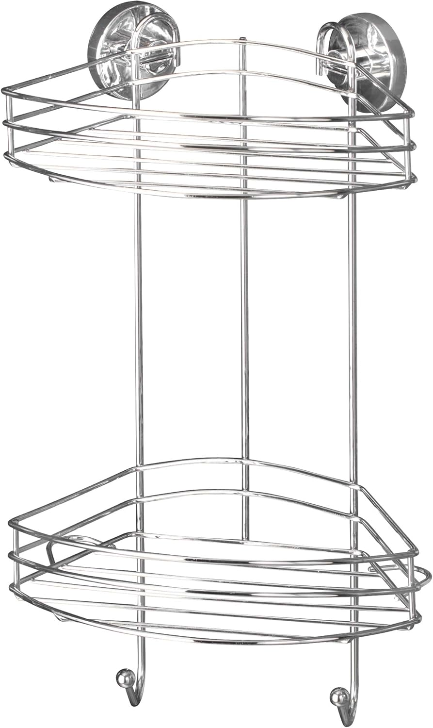 WENKO Vacuum-Loc® Eckregal 2 Etagen Chrom, hochwertige Duschablage mit 2 Ebenen und 2 Haken aus verc