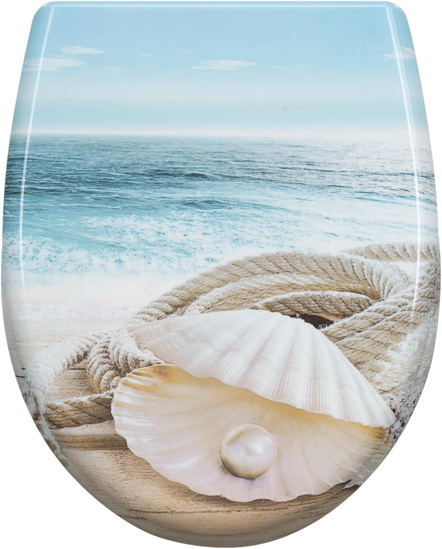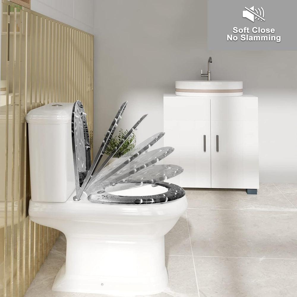 WOLTU Toilettendeckel mit Absenkautomatik Motiv, WC Sitz mit Schnellverschluss, Toilettensitz O Form