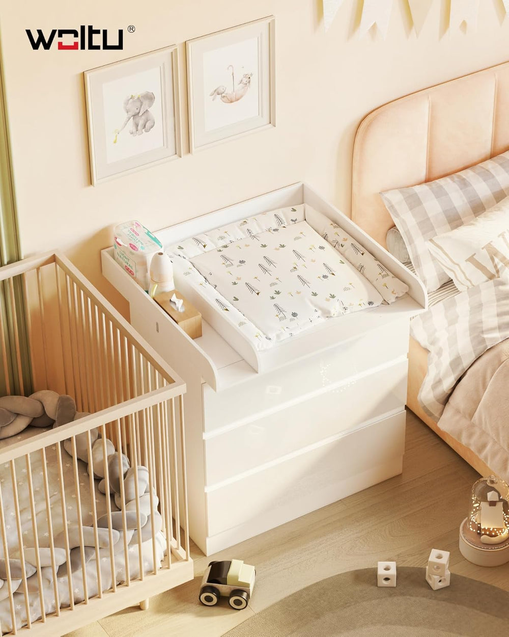 WOLTU Wickelaufsatz aus Holz, Wickeltischaufsatz Wickelkommode Aufsatz mit Trennfach Tiefe 48 cm, fü
